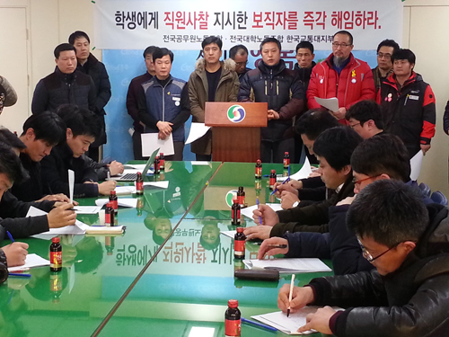 반면 직원들은 지난 2월 2일 대학 내 플래카드를 내걸고 “직원 사찰에 대한 진정성 있는 사과와 재발방지를 약속하라”고 촉구하고 있다. 안병성 전국대학노조 한국교통대 지부장은 “이 일이 좋은 일도 아니고 그동안 조용히 해결하려고 했다. 교수회장, 문제가 된 해당교수, 총장까지 대면했지만 답을 얻지 못했다. 시간만 흘려 보냈다”라고 설명했다. 이어 그는 “그동안 G교수와 직원들이 사이가 좋았던 것은 아니다. G교수가 공동실습관장을 맡으면서 직원들과 갈등을 빚어왔다. 하지만 직원을 감시하기 위해 학생을 시킨 것은 분명히 잘못된 행위다. 사찰에 대한 죄의식이 없어 보이는 게 더 큰 문제다”라고 강조했다.