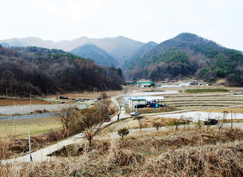 낙엽이 쌓여 푹신한 산길은 발걸음을 가볍게 하여주고 불무골 마을을 지나 포장길를 따라가며 가양리 마을풍경을 살펴보는 사이 묘골 마을 앞 도로에 도착하게 된다.