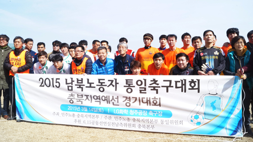 이날 행사에는 박석민 민주노총 통일위원장과 장필상 엘지화학노조 위원장 등 100 여명이 참석한 가운데 엘지화학 청주공장 잔디구장에서 진행됐다.