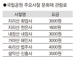 현행 문화재보호법 제49조, 제74조에 의하면 국보와 보물, 사적 및 명승 등 국가지정 문화재와 시·도지정 문화재 등 문화재 구역에서는 입장료를 받을 수 있도록 보장하고 있다. 지정 문화재가 있는 역사적인 사찰은 대부분 국립공원 지역에 위치했다. 따라서 국립공원 입장료가 폐지된 지난 2007년 이전까지는 관광객들에게 사찰 문화재관람료를 동시에 징수했다.
