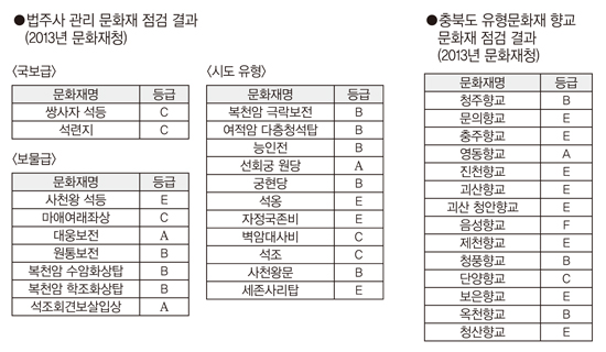 충북도 관계자는 “향교의 부속건물이나 시설이 많다보니 어디 한곳만 이상이 있어도 등급이 떨어지게 된다. 향교는 도심과 인접해 이용자가 많다보니 시설 노후도 빠른 편이다. 올해 전년보다 2배의 예산을 세워 문화재청이 지적한 사항을 대부분 보수했다”고 말했다.