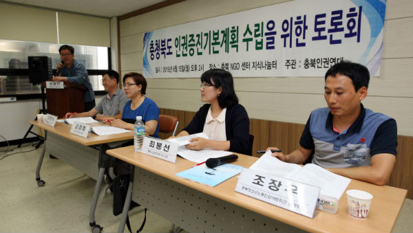인권연대는 지난 15일 충북NGO센터 회의실에서 ‘충청북도인권증진기본계획 수립을 위한 토론회’를 진행했다. 이날 토론회에서 노동인권, 여성, 노인, 장애인, 아동, 이주노동자 분야에 대한 실천 과제가 제시됐다.