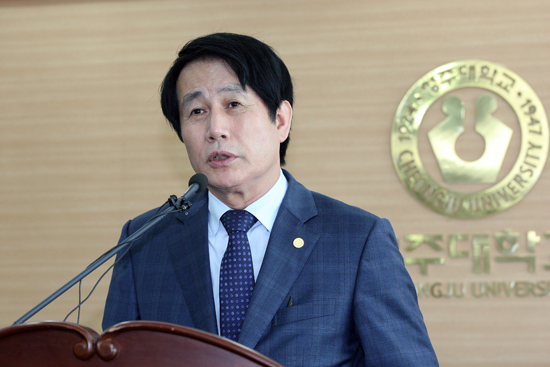 2년 연속 '부실대학'의 오명을 쓴 청주대가 총장 거취를 놓고 '오락가락' 막장극을 벌였다. 1차 부실대학의 책임자였던 전 총장이 2차 부실대학 지정 총장의 등을 떠밀었다. 13년 장기집권했던 김윤배 총장은 1차 부실대학 지정에 책임지고 작년말 사퇴했다. 실재 재단주인 김윤배 전 총장은 이사회를 통해 최측근 황신모 부총장을 후임 총장으로 내세웠다. 하지만 황 총장은 13년 내내 김 전 총장의 그늘을 벗어나지 못한 보직교수였다.