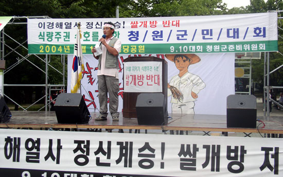 이들은 쌀시장개방은 전체농가의 75%를 차지하고 있는 농민들에게 목숨과도 같은 존재이며 400만 농민들의 몰락을 가저 올것으로 주장하고 쌀개방과 관련해 국민투표로 결정할것을 주장했다.