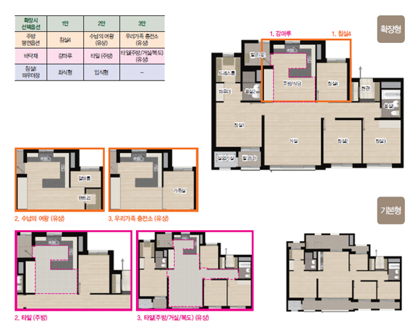전세대 남향 위주의 전면 4베이 판상형 구조를 도입해 채광과 통풍을 극대화했다. 각 평형별로 팬트리, 대형 드레스룸, 서재, 바닥재, 파우더장 타입 등을 입주자의 취향에 맞게 평면을 구성할 수 있도록 다양한 선택 옵션이 제공된다.