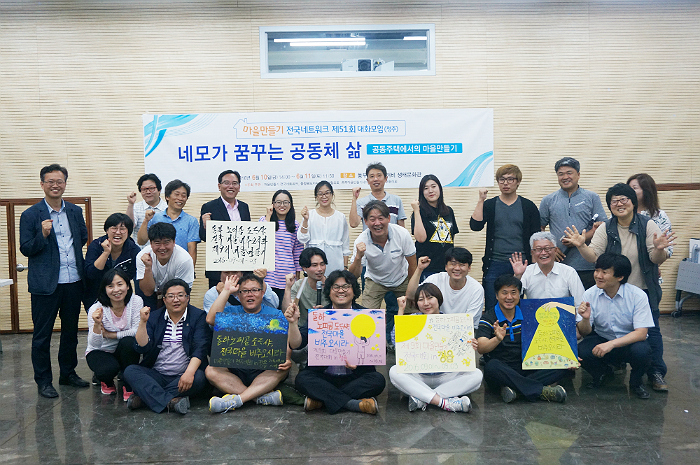 지난 10일 ‘마을만들기 전국네트워크 제51회 대화모임’이 청주시 우암동에 위치한 동부창고에서 개최됐다. 1박 2일간 진행된 이번 대화모임은 충청북도지속가능발전협의회, 충북마을만들기네트워크, 녹생청주협의회, 마을만들기전국네트워크 등이 주최•주관했다. 프로그램으로는 지역토론 ‘충청북도 마을 만들기 활성화 방안 간담회’가 진행됐고. 마을공동체 지역사례발표, 전국사례발표, 자유토론 순으로 진행됐다. 사례 발표자로는 사단법인 풀꿈환경재단 염우 상임이사, 사단법인 두꺼비친구들 박완희 사무처장, 사회적 협동조합 일하는 사람들 이상엽 상임이사, (주)두꺼비하우징 이제원 실장 등이 참여했다.