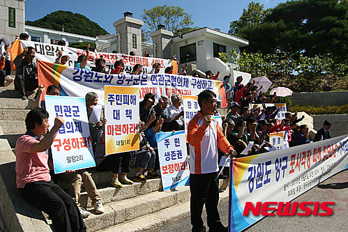 ▲ 강원 양구군 팔랑리 포사격장 인근 주민들의 항의집회 모습.