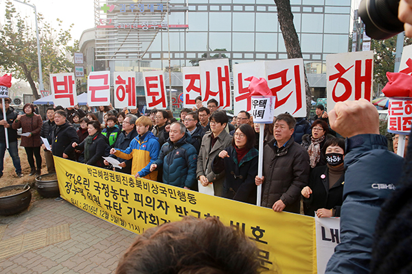 이어 “정우택은 지난 11월 10일 보수단체 일부가 주최한 박근혜 하야 반대 집회에 참가해서 ‘대통령의 권력을 찬탈하려는 음모를 막자’라는 망언을 일삼은 발언을 했다”며 “박근혜 국정농단의 진실을 음모로 왜곡하는 자가 새누리당의 원내대표가 된 것은 충북 지역의 수치”라고 밝혔다.
