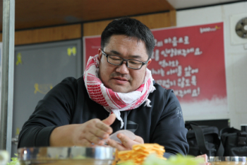 자천타천 ‘세월호가족휴게소’의 1등 요리사라 불리는 김명봉(37)씨는 이곳에 상주하