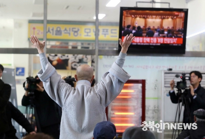대통령 파면이 결정되자 청주시외버스터미널에서 뉴스를 시청하던 대다수의 시민들은 박수를 치고 만세를 부르는 등 헌법재판소의 결정을 환영했다.