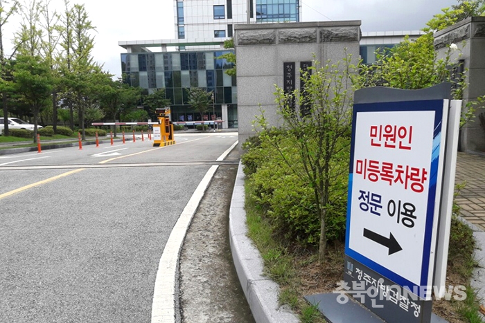 청주지방검찰청이 민원인 차량출입시 개인 휴대전화 번호를 확인하는등 과도한 통제조치를 취해 논란이 되고 있다. 시민의 제보에 따라 지난 14일 민원실 방문을 내세워 청주 산남동 청주지방검찰청 청사를 방문했다. 일단은 4차선 도로에서 출입이 가장 편리한 서문으로 들어가려 했지만 ‘민원인 미등록차량 정문이용’이란 안내문이 붙어 있었다. 결국 두꺼비생태공원쪽으로 돌아가 정문으로 들어섰지만 이번에는 진출입 차단기가 올라가지 않았다.