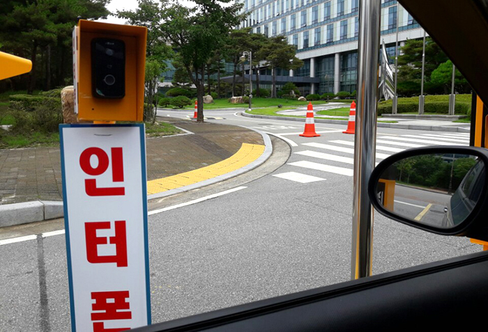 차유리창을 내리자 경비원이 “거기 인터폰에서 묻는대로 대답하면 열릴 것”이라고 안내했다. 그러자 설치된 인터폰에서 ‘무슨 용무로 왔느냐’고 물었고 ‘민원서류를 떼러 왔다’고 답했다. 그러자 두번째 질문은 ‘어떤 민원서류를 발급받으러 왔느냐’였고 ‘공소부제기이유서를 청구하러 왔다’고 답했다. 이젠 끝났나 싶었더니 ‘본인 휴대폰 번호를 불러달라’는 생뚱맞은 질문이 돌아왔다. 결국 전화번호를 밝히자 차단기가 올라갔고 주차를 마친 뒤 경비원에게 ‘왜, 개인 휴대전화번호까지 확인하느냐’고 질문했다.