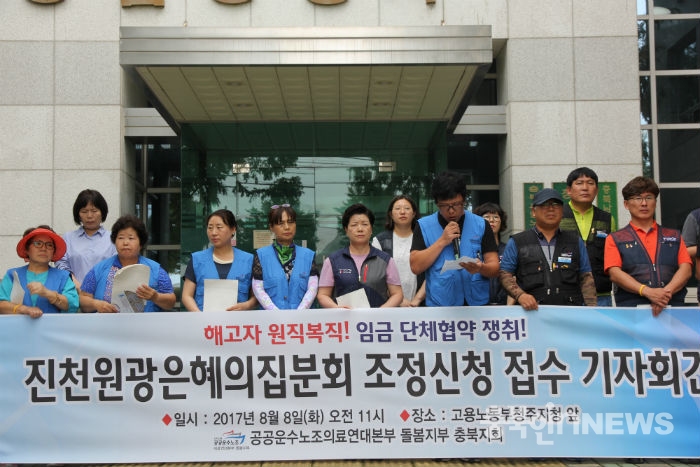 8일 전국공공운수노조 돌봄지부 충북지회(지회장 윤남용, 이하 돌봄지회)는 기자회견을 열고 충북지방노동위원회에 단체협상 결렬에 따른 조정신청을 접수했다.