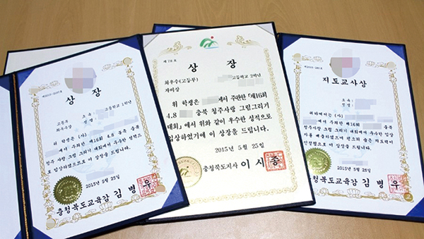도교육청 관계자는 “일단 참가비를 받거나 행사관련 교재부담이 있으면 시상에 제약을 받는다”고 말했다. 청주시는 2016년 시장상 발급건수가 977건으로 가장 많았다. 3개 기관 모두 실국별로 결정해 제공하다보니 충북도를 제외하곤 전체 건수를 취합한 자료가 없었다.