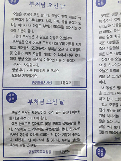 음성 A사찰 어린이 백일장, 원고지 2장 작품 도지사·교육감상 수상