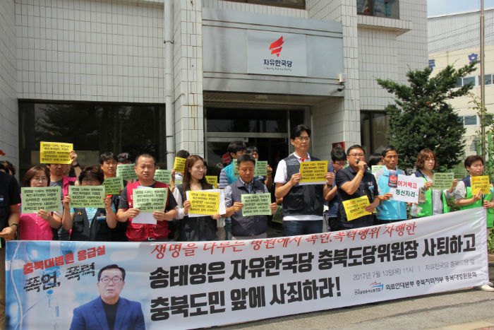 충북대병원 응급실에서 난동을 부린 혐의(업무방해 등)로 송태영 자유한국당 청주 흥덕구 당협위원장이 불구속 기소됐다.