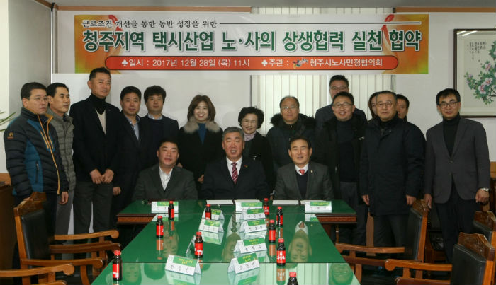 청주시노사민정협의회 주관으로 이루어진 이번 협약은 노·사가 생산적이고 협력적인 상생의 노사관계를 바탕으로 택시산업의 경쟁력 확보와 근로조건 개선을 통한 동반성장을 위해 마련됐다.