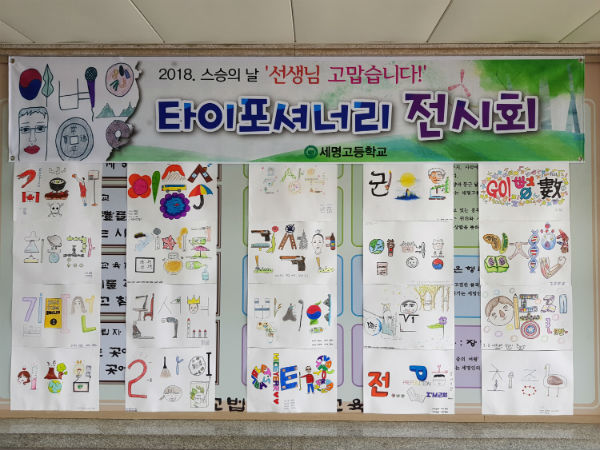 타이포셔너리(Typotionary; 문자도)는 단어의 의미를 보여주는 그림을 글자와 함께 구성한 것이다. 지난 4월 초부터 학생들은 선생님들의 특징과 성격, 가치관을 담은 타이포셔너리를 선생님 개개인별로 제작하고 14일 중앙현관에 50여 작품을 전시했다.