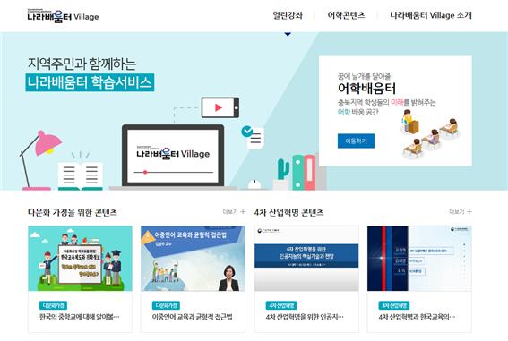 국가공무원인재개발원(원장 오동호)은 충북혁신도시 주민을 위한 나라배움터 빌리지(village.nhi.go.kr)서비스를 7월부터 시범운영한다고 9일 밝혔다. 나라배움터 빌리지는 나라배움터 플랫폼 기반의 지역주민 대상 특화 홈페이지로 학부모를 대상으로 4차 산업 혁명 및 소프트웨어활용, 인문학 등 17개 과정이 운영된다.