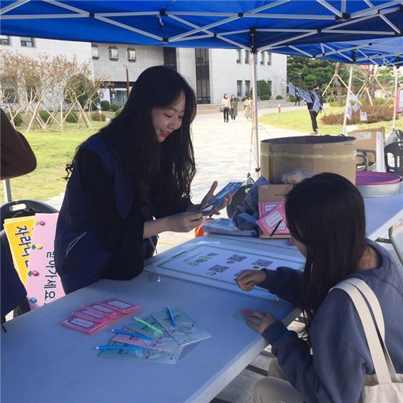 보건복지부에서 주최하고 인구보건복지협회에서 주관하는 ‘대학생 생명사랑 서포터즈’는 10일 임산부의 날을 맞아 충북대학교 축제에서 ‘2세에게 편지쓰기’ 캠페인을 진행했다.