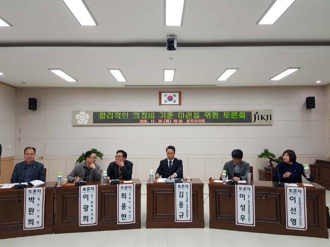 20일, 청주시의회는 특별위원회실에서 '합리적인 의정비 기준 마련을 위한 토론회'를 열고 시민의견 수렴에 나섰다. 이번 토론회는 김용규 시의원의 사회로 인상 반대 측에 이성우 청주충북환경엽합 사무처장·이선영 충북참여자치시민연대 사무처장이 참여했고 인상 찬성 측에는 박완희 시의원·이광희 전 충북도의원·최용현 변호사가 나섰다.