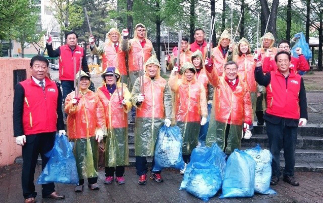 비가 오는 궂은 날씨에도 최현호 당협위원장과 이옥규 충북도의원, 이완복 청주시의원을 비롯한 당원 30명은 분평동 원마루공원에 모여 봉사활동을 진행했다.