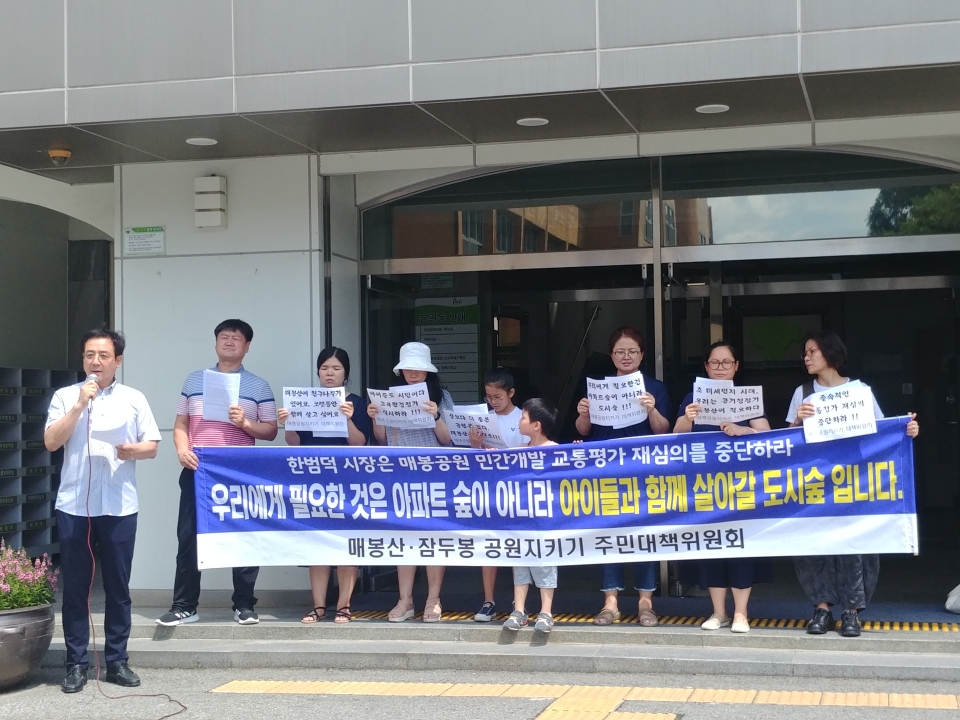 대책위는 "매봉공원 민간개발 계획은 환경영향평가, 교통영향평가, 교육환경평가 등 기본적인 행정절차도 진행하지 못할 정도로 문제가 많다. 20년간 공원일몰제에 대한 아무런 준비도 하지 않다가 이제 와서 민간개발만을 주장하는 것은 무책임한 탁상행정, 졸속행정"이라고 지적했다.