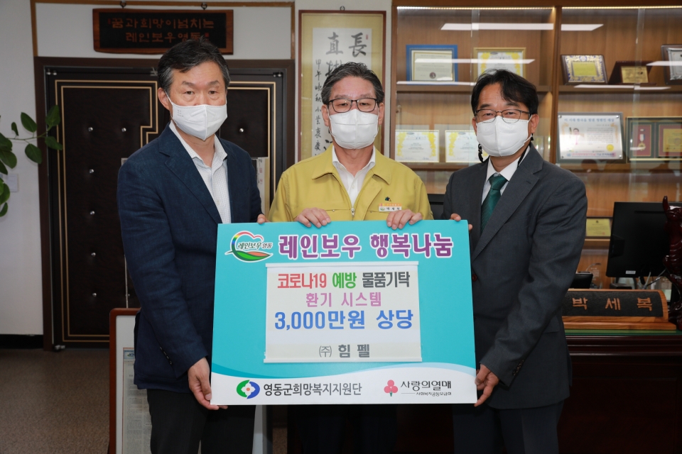 환기가전기업 ㈜힘펠이 3일 영동군청을 찾아 3천만원 상당의 환기시스템 6대를 레인보우 행복나눔에 기탁했다.