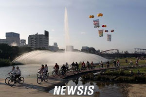 청주시 무심천에서는 24일 오전 7시부터 시민 1000여명이 참여하는 '자전거 타기 대행진'이 펼쳐졌다.