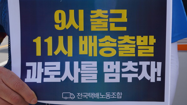 전국택배노동조합충북지부(이하 택배노조 충북지부)가 오는 7일부터 ‘9시 출근 11시 배송출발’을 선언했다. 출근과 배송 출발을 2시간 늦춰 노동시간을 단축하겠다는 얘기다.
