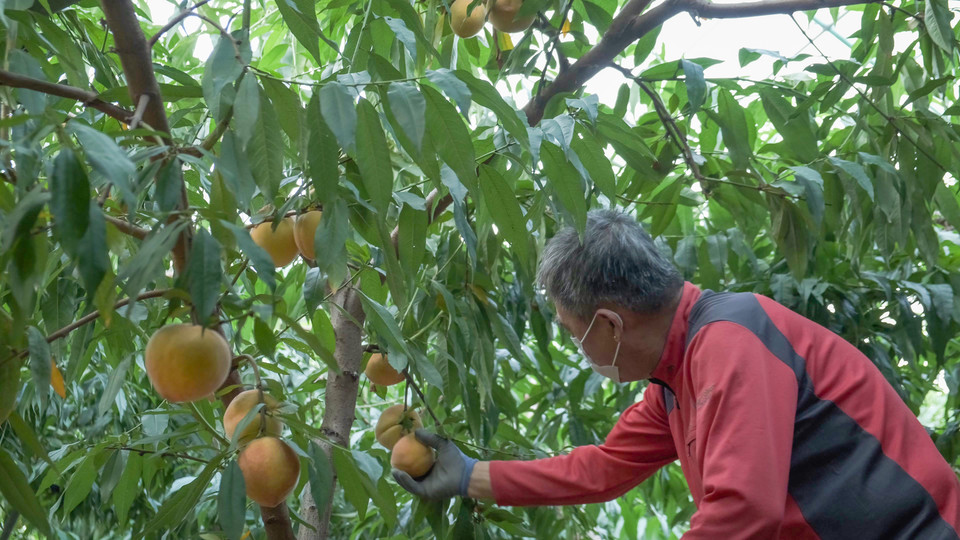 '과일왕국' 영동군의 시설복숭아 출하가 한창이다.