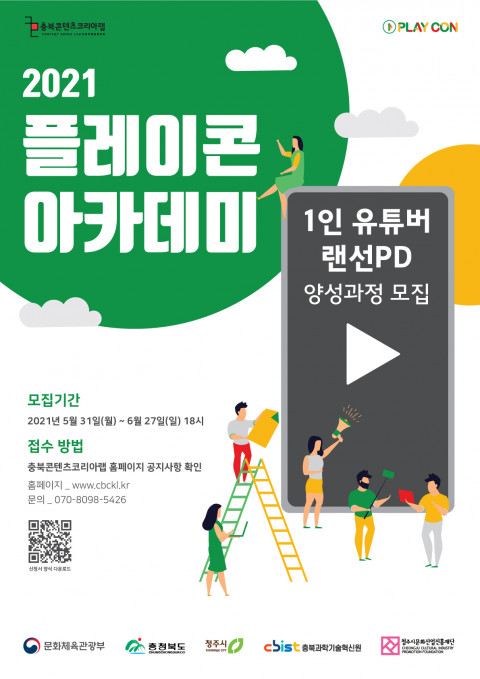 충북콘텐츠코리아랩이 1인 유튜버·랜선 PD 양성과정인 ‘플레이콘 아카데미 4기’ 참가자를 오는 27일까지 모집한다.