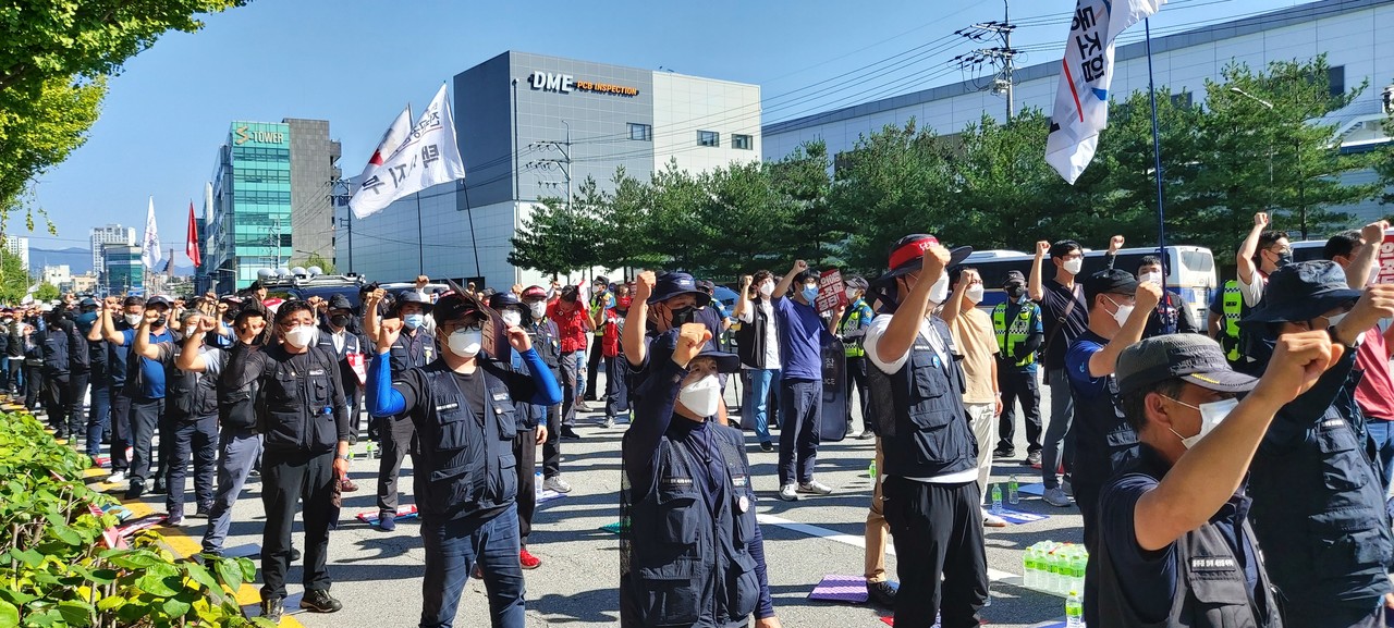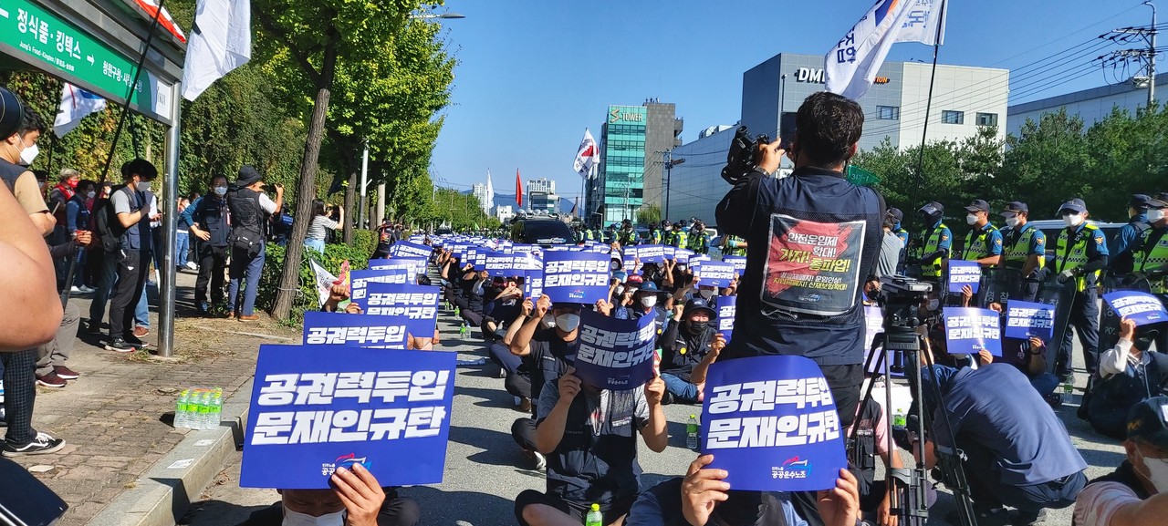 민주노총 공공운수노조는 이날 SPC청주공장 인근 도로에서 ‘SPC자본 및 공권력 투입 규탄 결의대회’를 열었다. SPC청주공장 일대를 수십 대의 경찰차와 병력이 원천봉쇄, 사실상 SPC청주공장으로 진입이 불가능해 대회 참가자들은 인근 도로에서 3시간가량 집회를 이어갔다. 당초 집회 시작 시간은 오후 2시였으나 경찰이 집회 장소 진입을 막아 30여 분간 지연됐다.