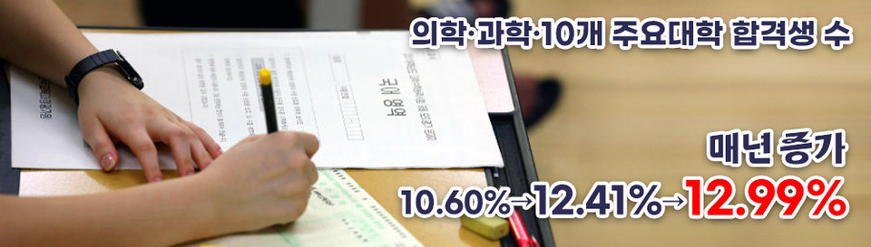이어 “SKY만 중요한 것이 아니다. 과학관련 입학생들이 증가하고 있다는 것은 주목할 만 하다”며 “한쪽으로 성향이 쏠리지 않도록 전반적으로 같이 생각할 수 있도록 노력하고 있다”고 설명했다.