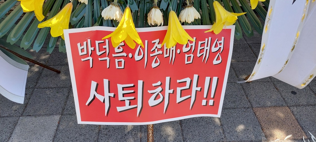 이어 “근조화환 퍼포먼스가 전날 기획된 것이고 총무가 혼자 밤에 일괄적으로 하다 보니 실수가 생겼다. 단순 실수다”라고 반박했다.