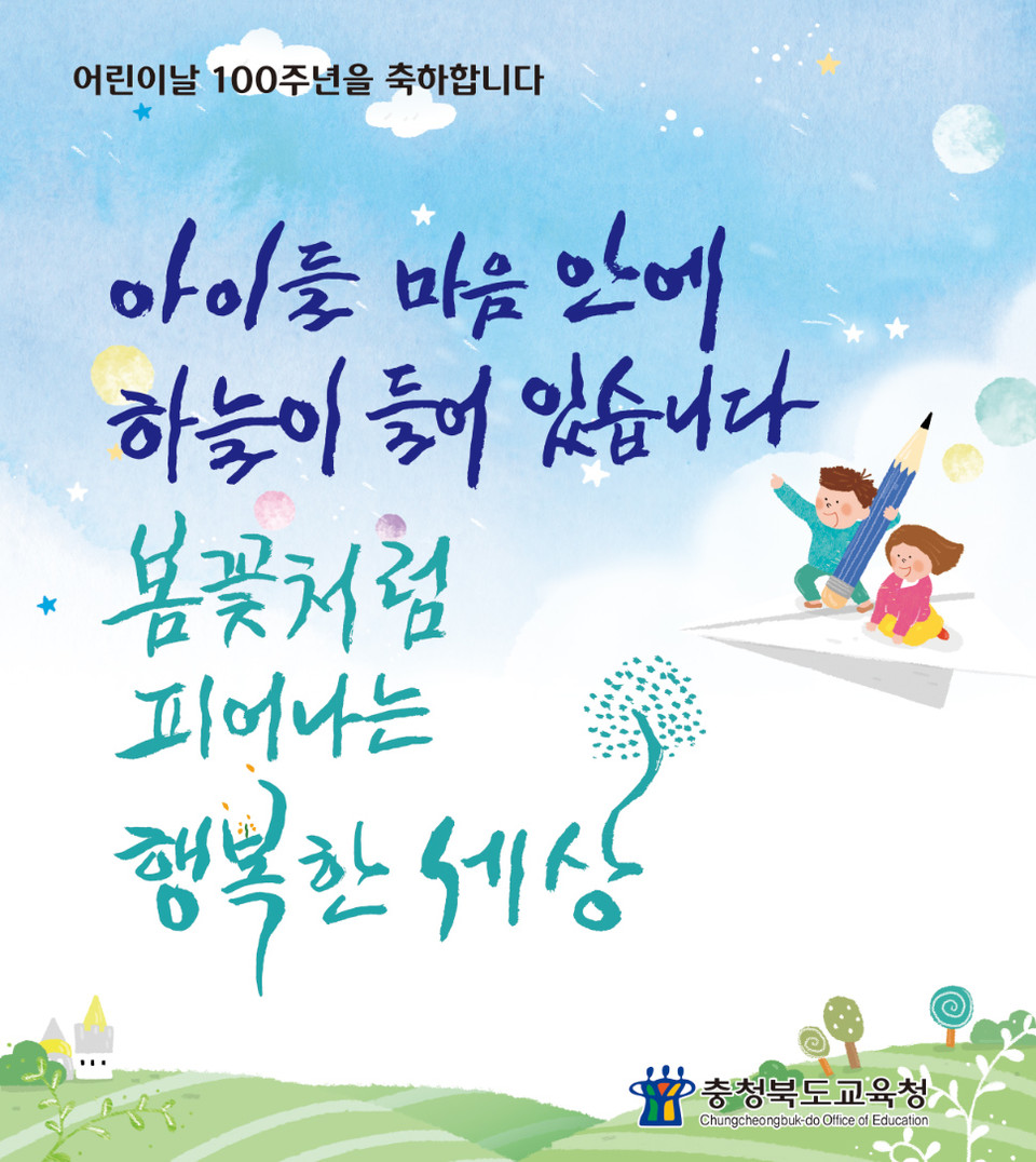 충북교육청은 오는 5월 5일 어린이날 100주년을 맞아 어린이의 소중함을 일깨우는 다채로운 행사를 준비하고 있다.