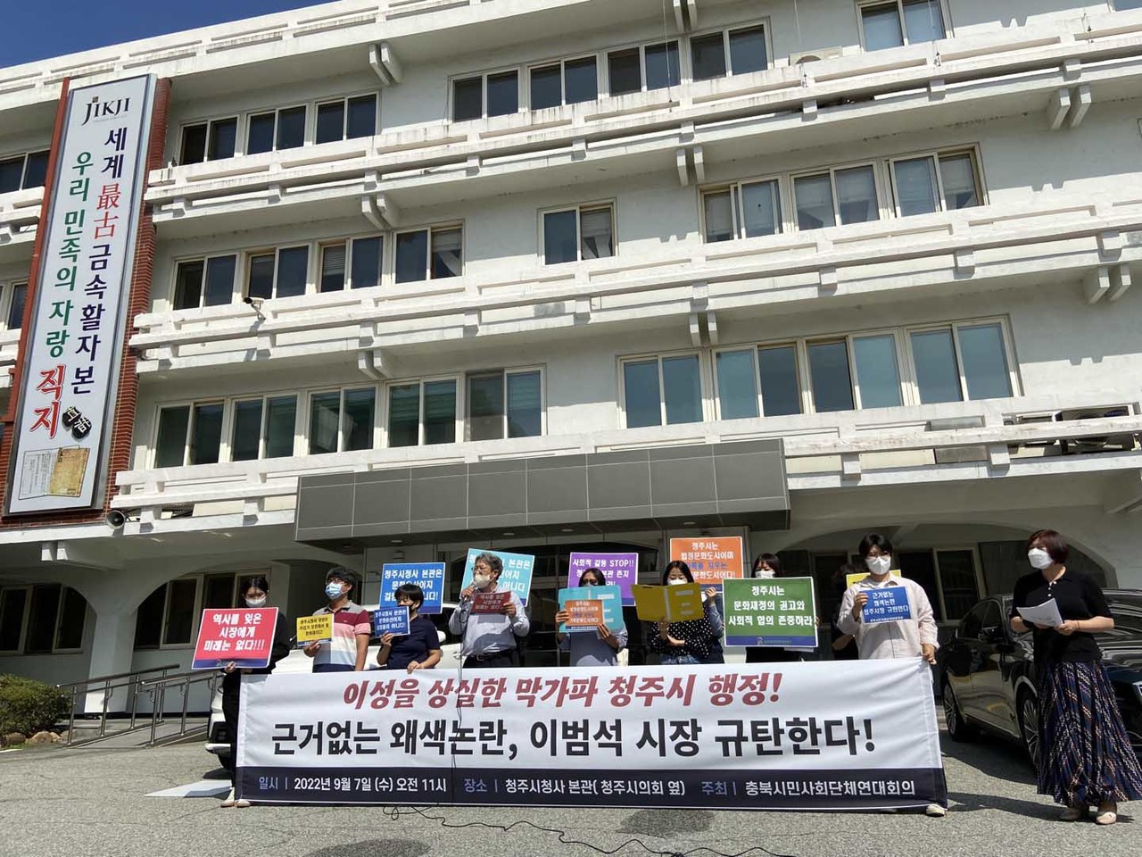 연대회의는 지난 5일 기자회견을 열고 청주시청 본관 보존을 주장한데 이어, 7일 또다시 기자회견을 열고 시청 본관 철거를 주장한 이범석 시장을 향해 '왜색 문화' 발언 출처와 철거 이유를 밝히라고 요구했다.