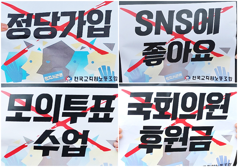 현재 우리나라에서 교사들은 선거 시기 교육정책에 대한 의견을 밝힐 수도, 정치후원금을 낼 수도, 수업 시간에 모의투표도 할 수도 없다. 자신이 지지하는 정치인 SNS에 ‘좋아요’를 누르는 것도 금지되어 있다.
