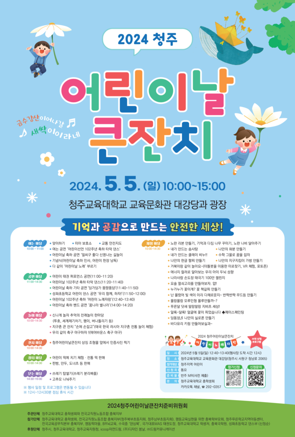 청주어린이날큰잔치준비위원회가 오는 5일 오전 10시부터 청주교육대학교에서 ‘2024청주어린이날큰잔치’를 연다.