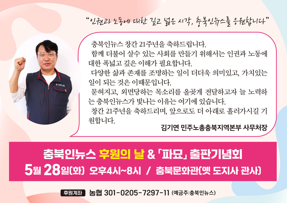 - “노동자들의 벗 '충북인 뉴스'를 응원합니다”