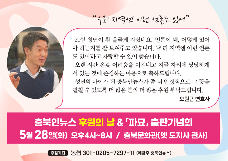 - “우리 지역 대안 언론, 충북인뉴스를 응원합니다”