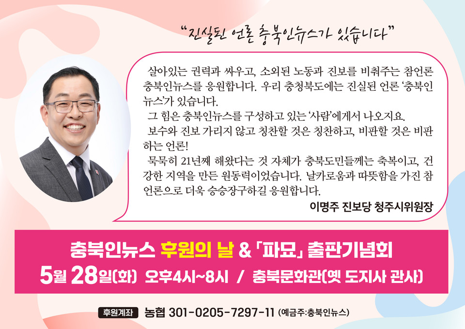 - “담백하게 진실을 탐색하는 충북인뉴스를 믿고 응원합니다”