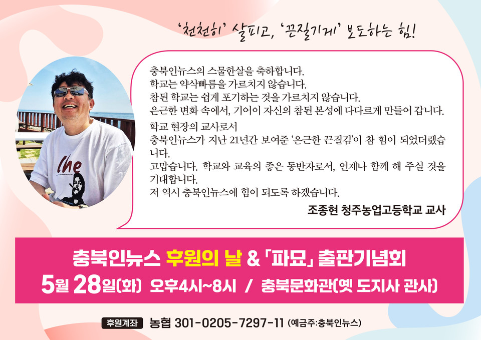 - “담백하게 진실을 탐색하는 충북인뉴스를 믿고 응원합니다”