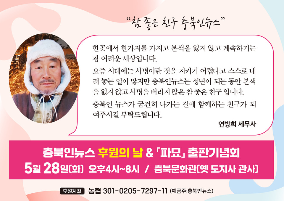 - “담백하게 진실을 탐색하는 충북인뉴스를 믿고 응원합니다”
