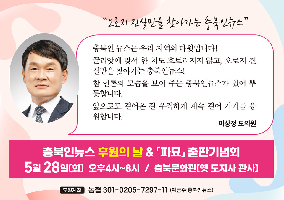 - “담백하게 진실을 탐색하는 충북인뉴스를 믿고 응원합니다”