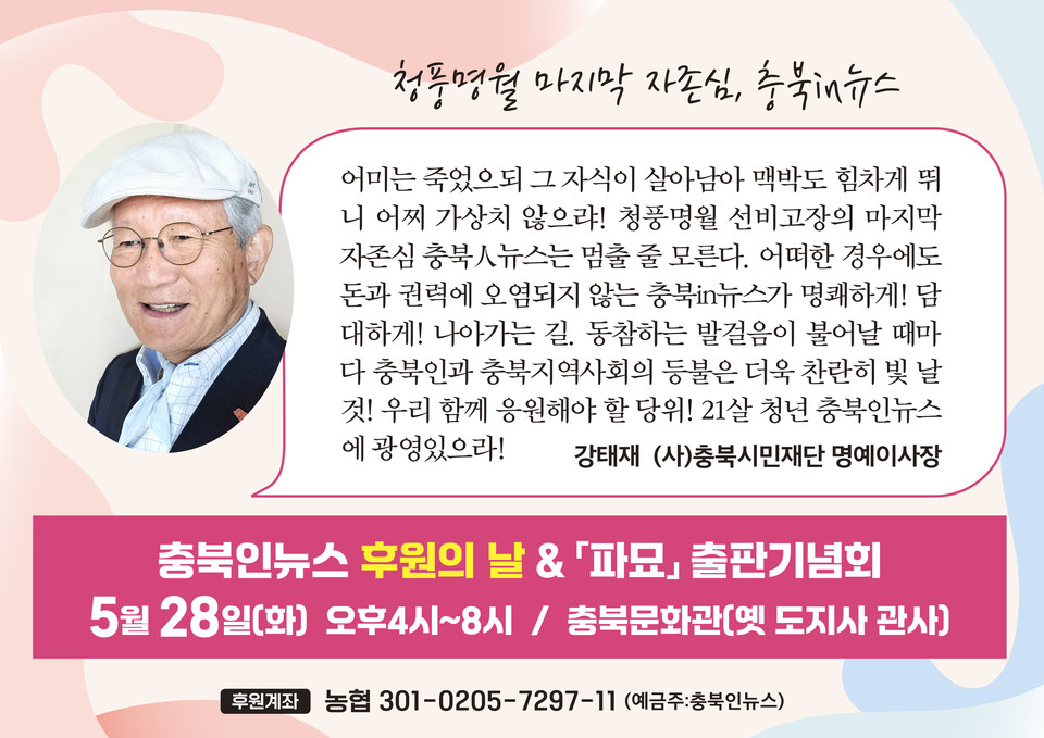 - “담백하게 진실을 탐색하는 충북인뉴스를 믿고 응원합니다”