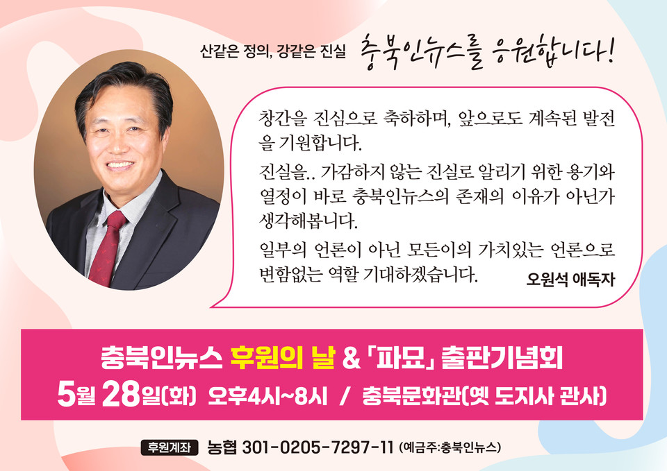 - “담백하게 진실을 탐색하는 충북인뉴스를 믿고 응원합니다”
