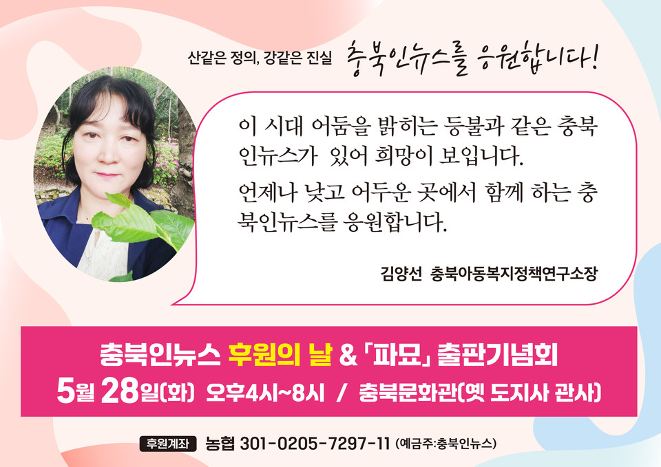 - “충북인뉴스의 노력과 열정은 우리 모두에게 힘이 되고 있습니다”