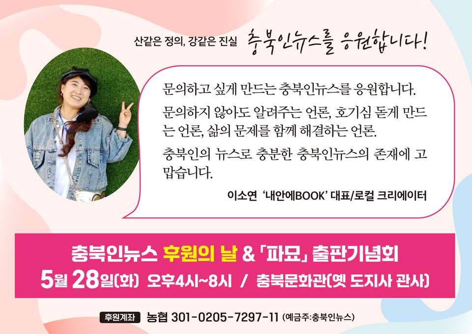 - “시민의 목소리를 전하는 충북인뉴스 응원합니다”