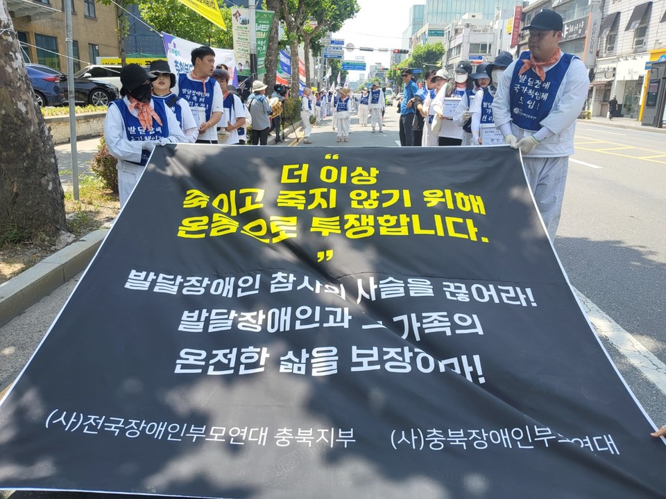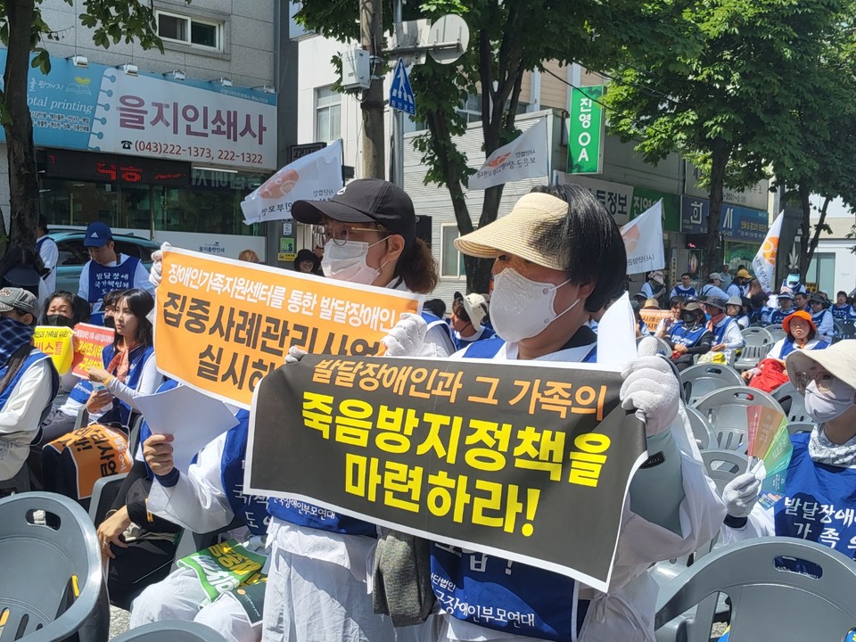 (사)전국장애인부모연대 충북지부는 19일 충북도청 앞에서 ‘발달장애인 가정 생명 보호 정책 지원체계 구축 촉구 결의대회’를 진행했다.